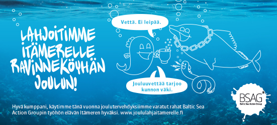 Joululahjojen sijaan Lemminkäinen tukee myös tänä vuonna Baltic Sea Action Groupin "Lahjoita Itämerelle ravinneköyhä joulu" -kampanjaa.