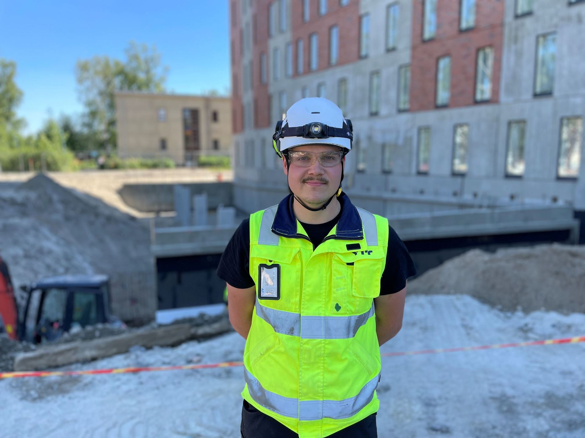 Työnjohtoharjoittelijamme Sampo Ruuskanen työskentelee tänä kesänä työnjohtoharjoittelijana kerrostalotyömaalla Jyväskylässä. Hän on ollut tyytyväinen YIT:n tarjoamiin kehittymismahdollisuuksiin ja edennyt koko ajan vastuullisempiin tehtäviin.