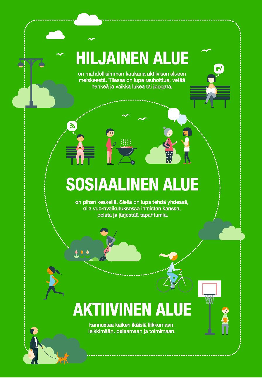 Viihtyisä piha syntyy ottamalla käyttäjät mukaan suunnitteluun: osa pihasta tehdään valmiiksi, osan suunnitteluun pihan käyttäjät osallistuvat ja pitävät sen elossa, joten piha on ajassa muuntautuva eikä koskaan valmis.